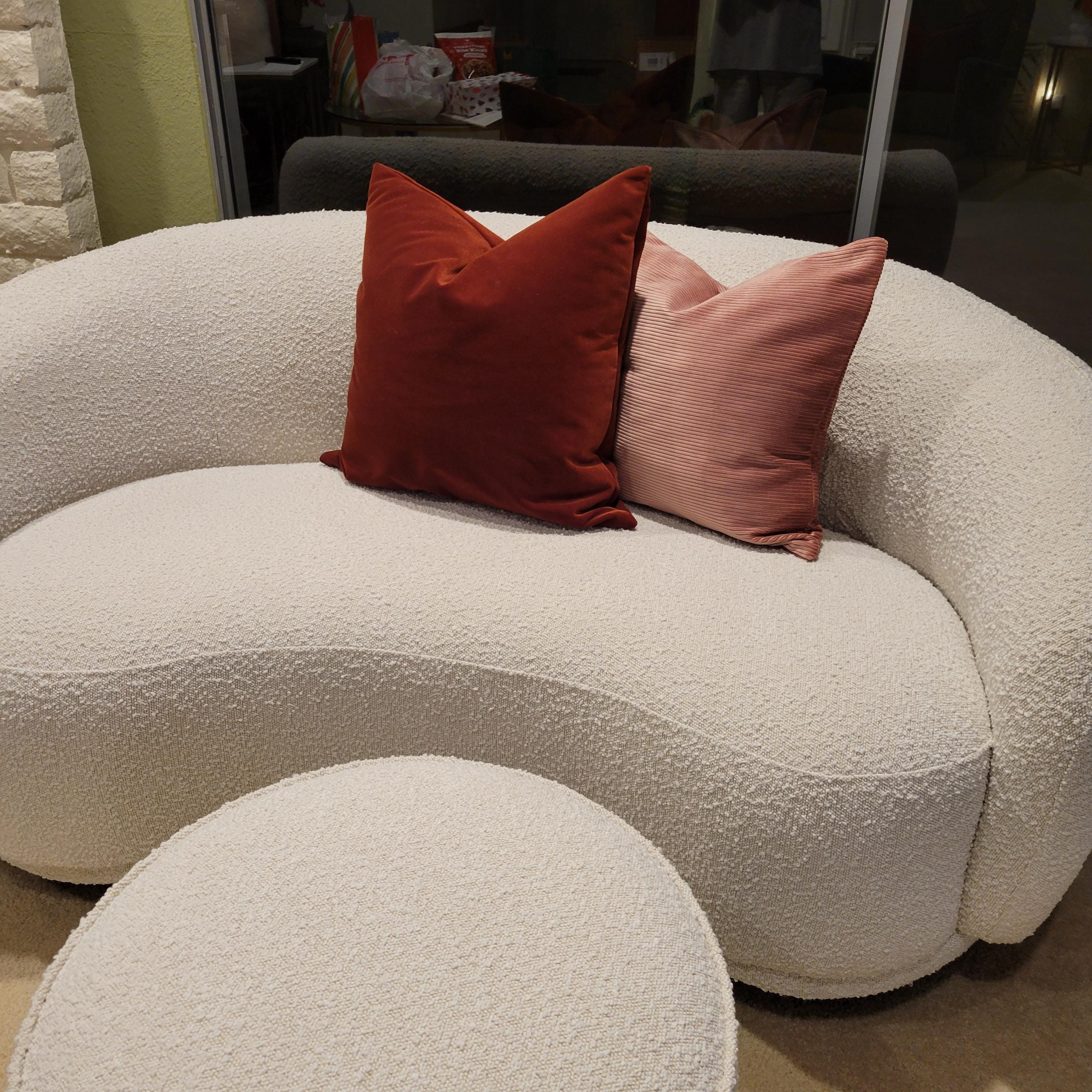 I ordered three 24” covers to match this rug for my daughter’s college apartment in the Fall. It's a perfect match! I love how the fabric looks slightly different depending on how the light hits it. We can't wait to set up her apartment and use these in September! I highly recommend these covers!