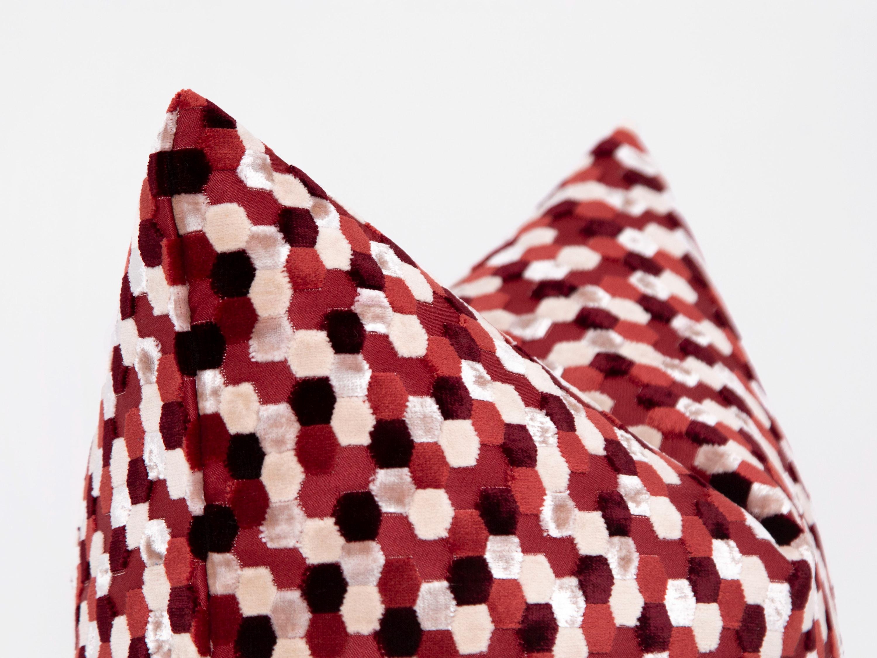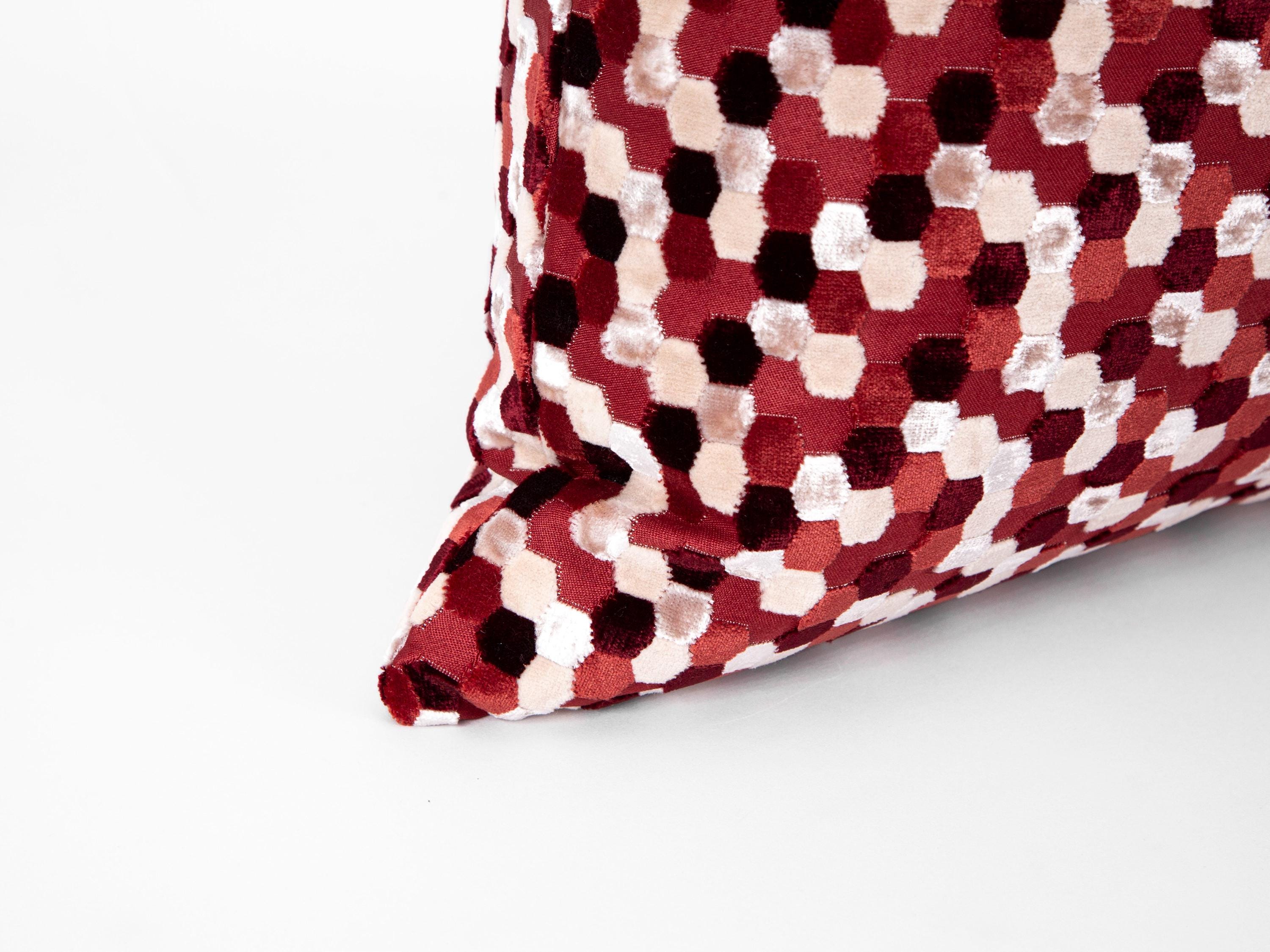 Red Mosaic Velvet Pillow Cover: Geometric Luxury Home Decor | All Duties Prepaid for USA