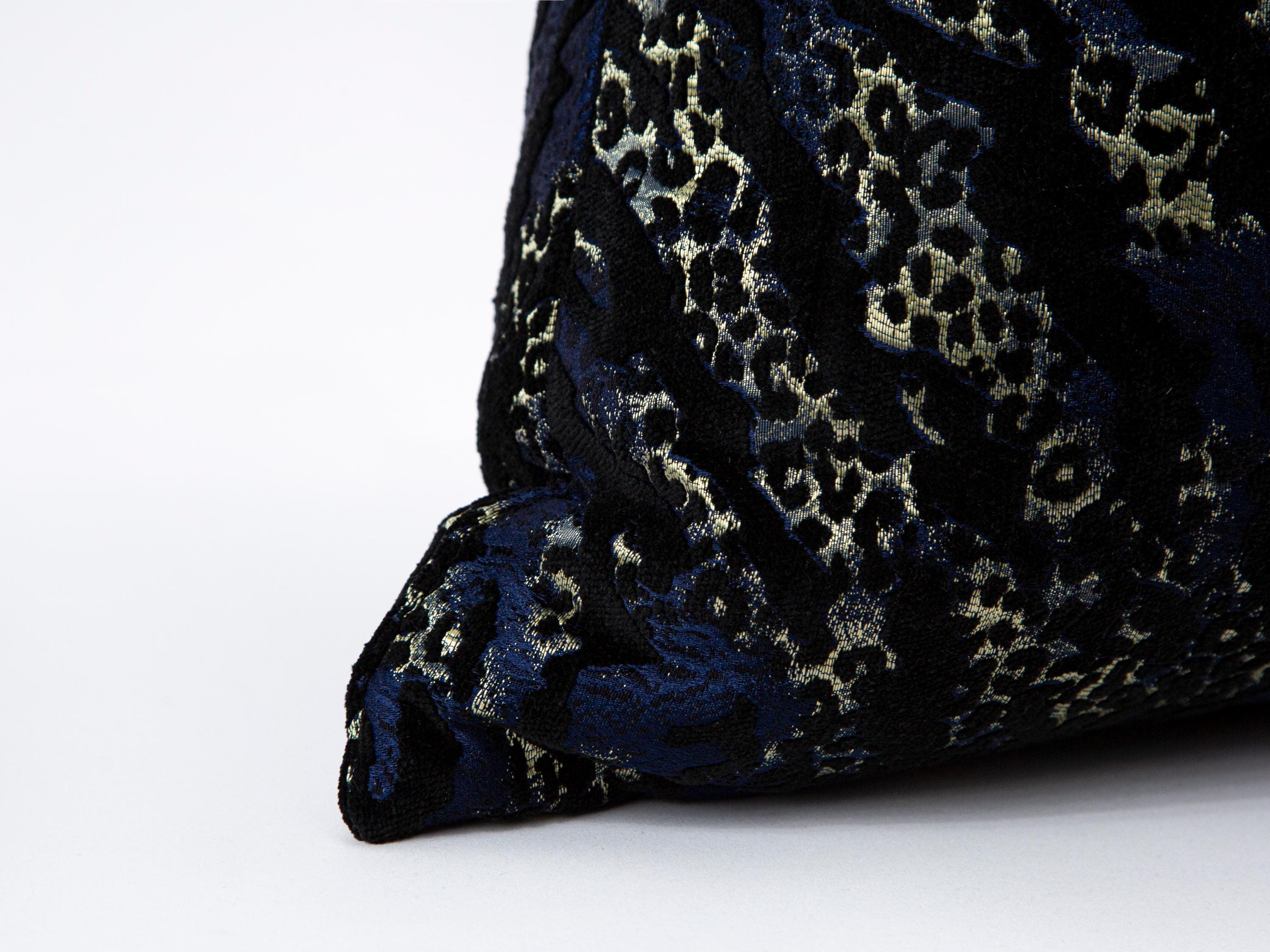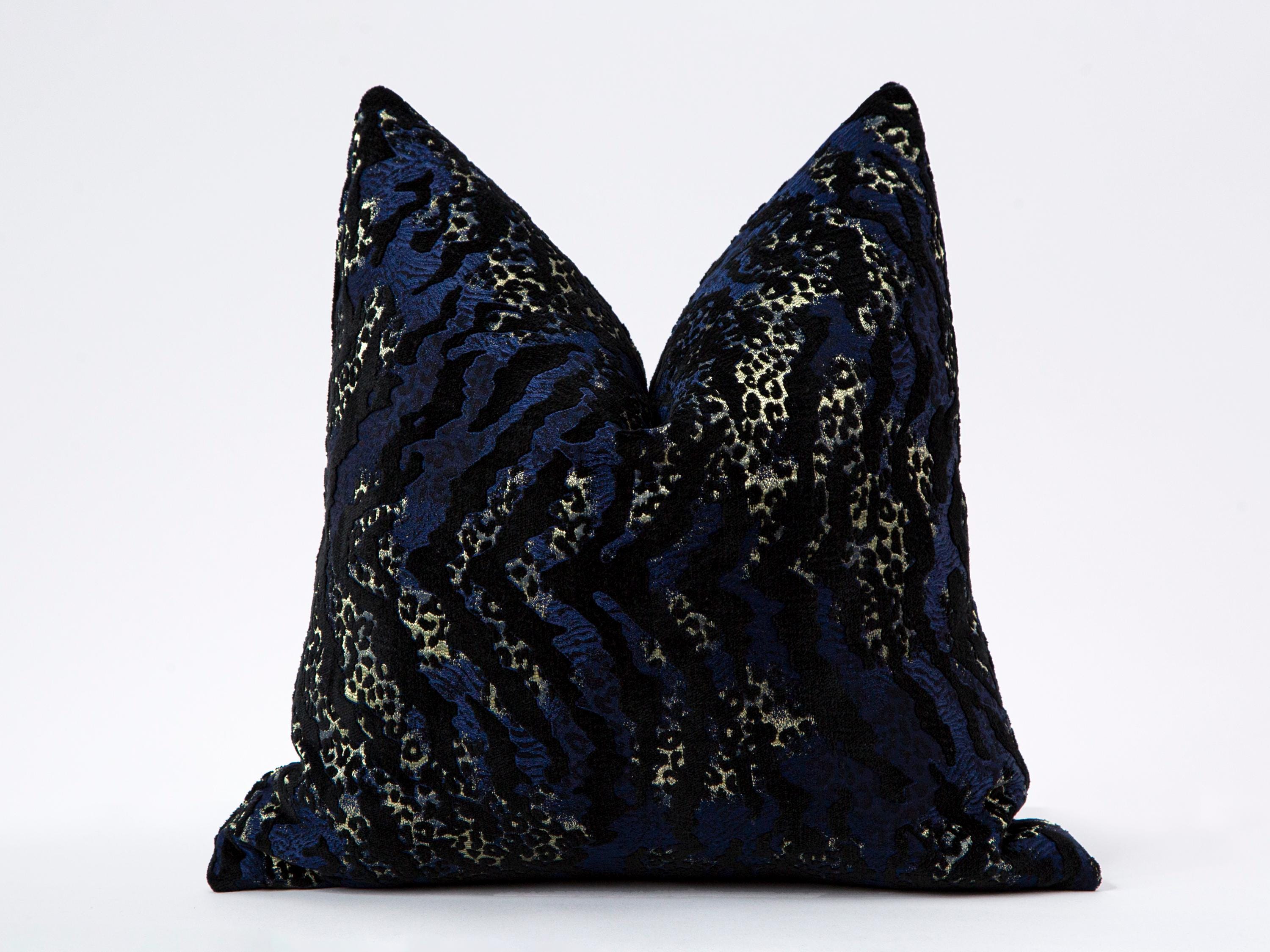 Black and Blue Velvet Pillow Cover: Animal Print Accent Couch Pillow