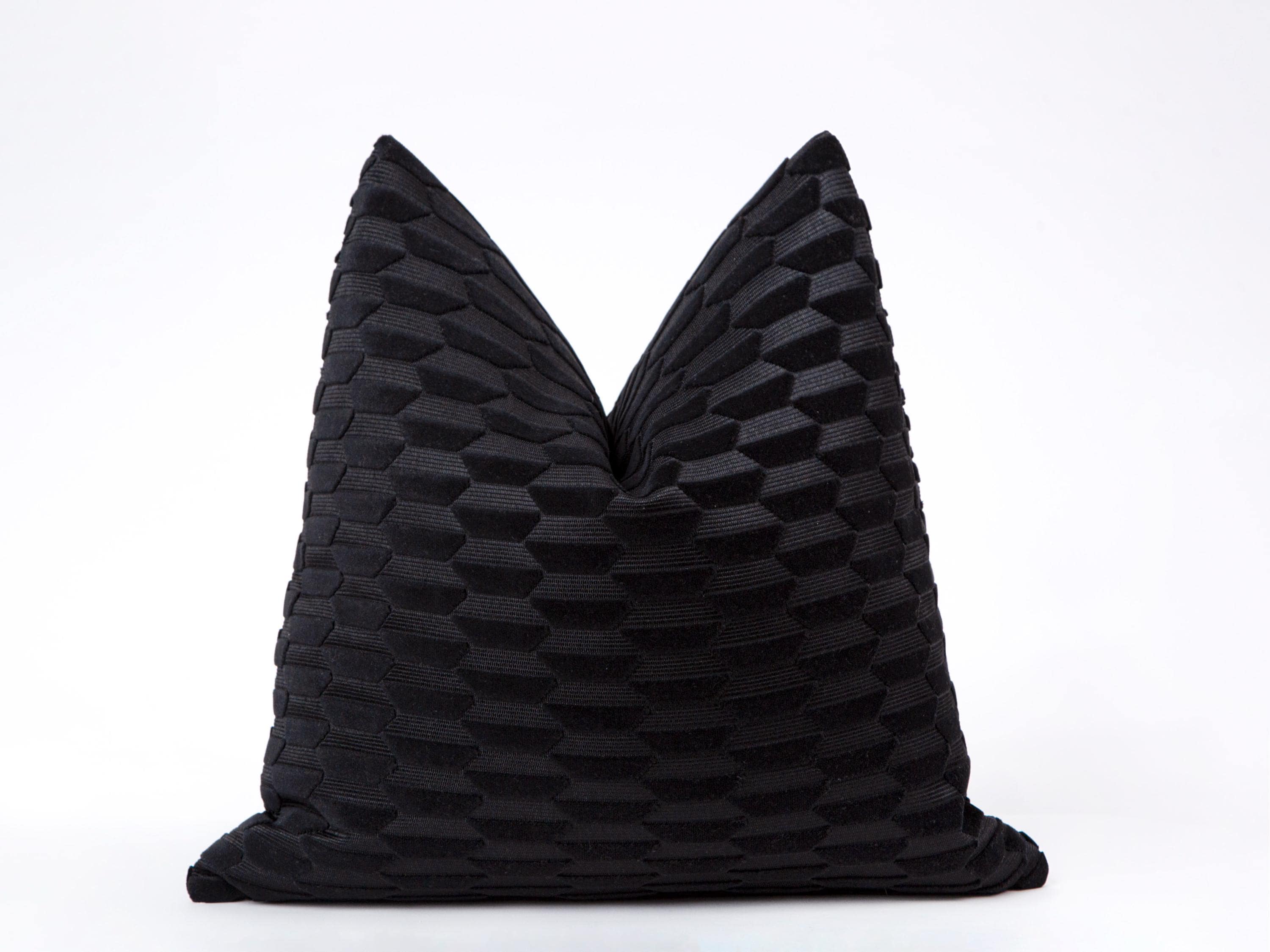 Black Velvet Pillow Cover: Textured Woven Cotton Cushion Cover | All Duties Prepaid for USA