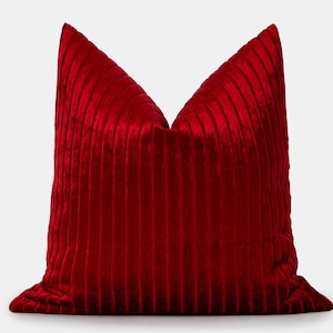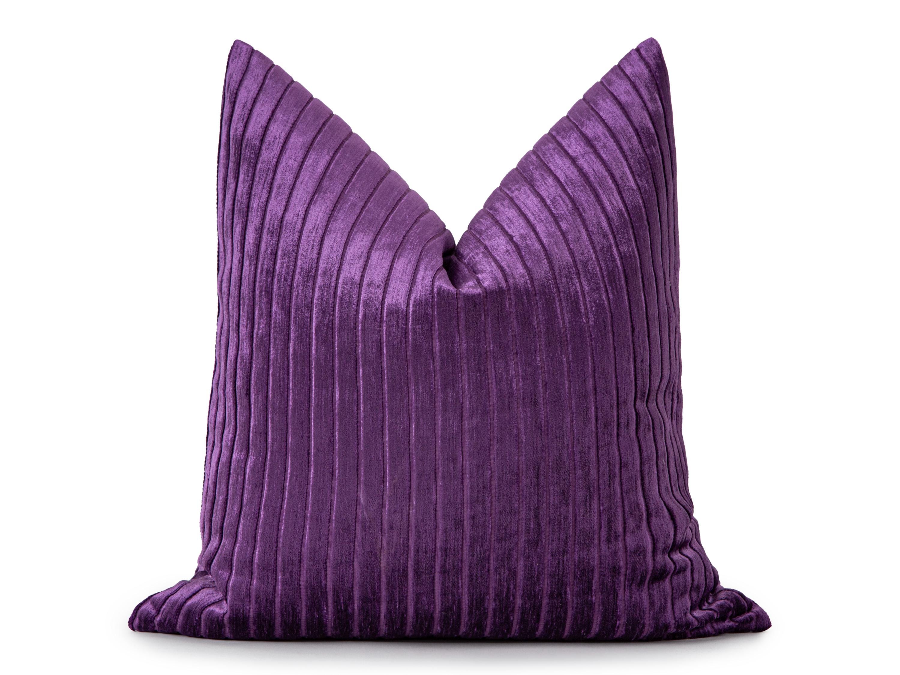 Deep Purple Channel Velvet Pillow Cover, Luxury Pleated Cushion, Art Deco Euro Sham