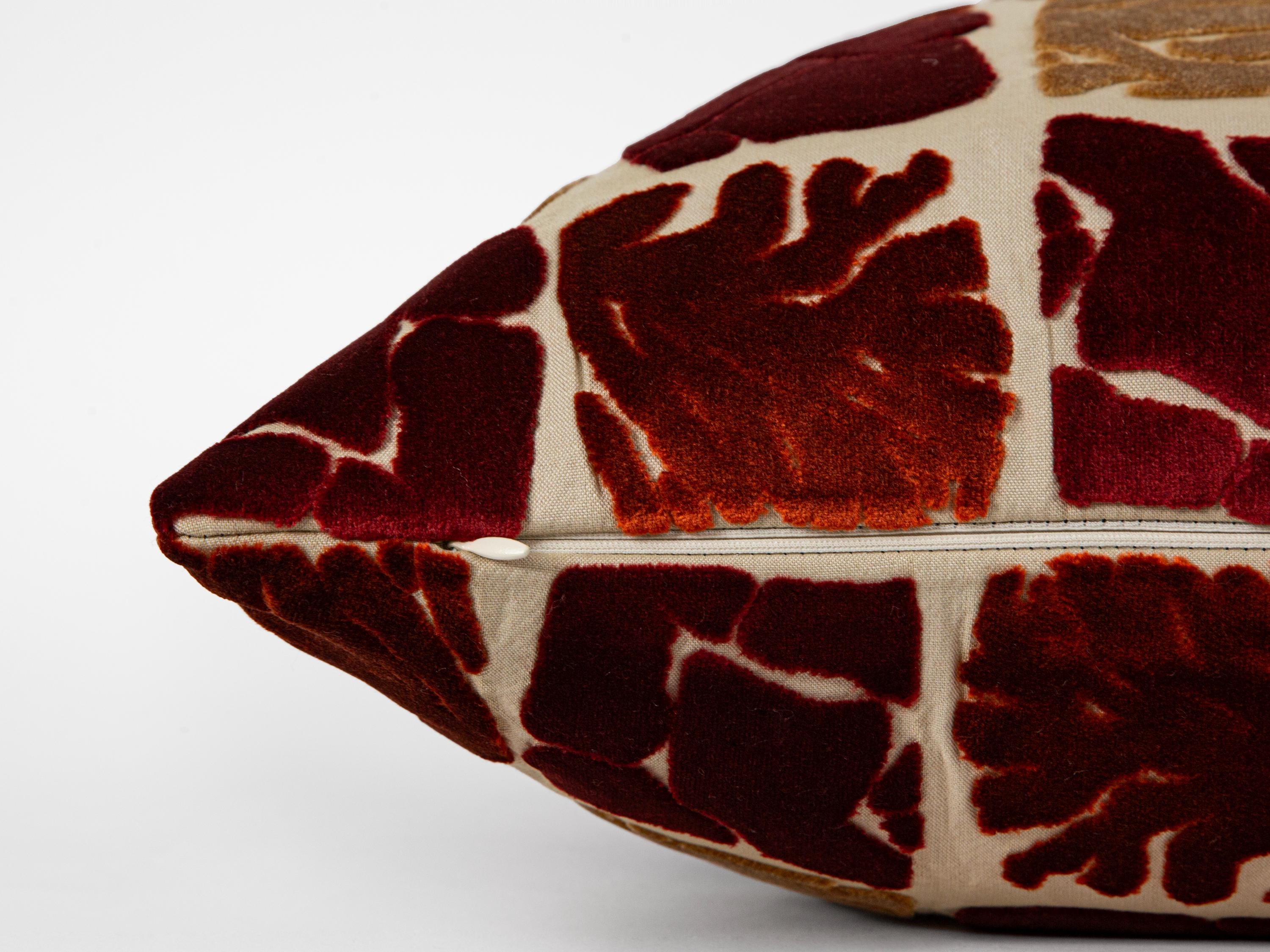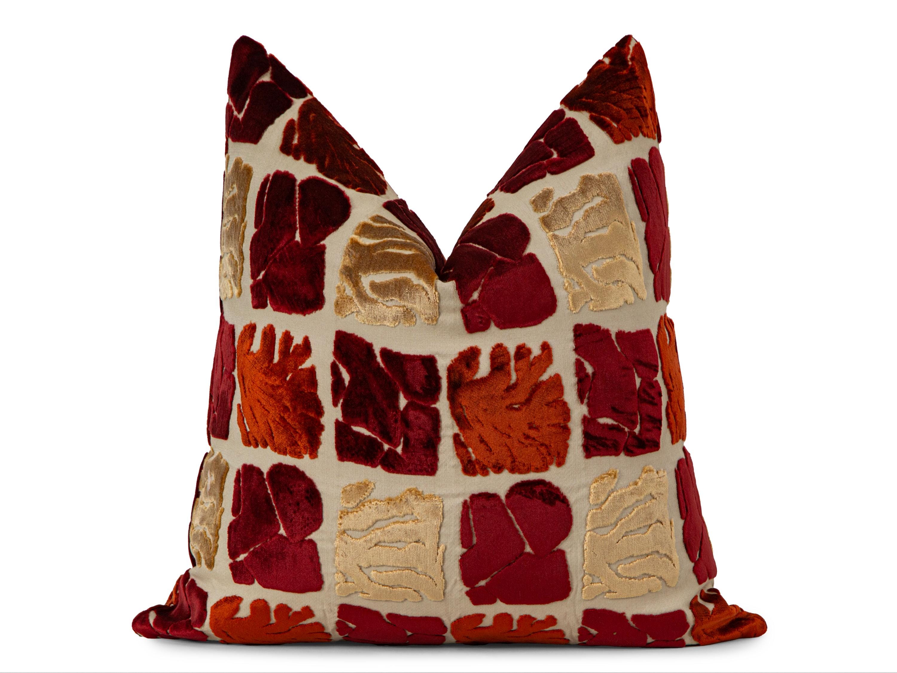 Rust Cut Velvet Pillow Cover – Abstract Pattern Cushion