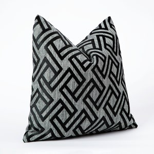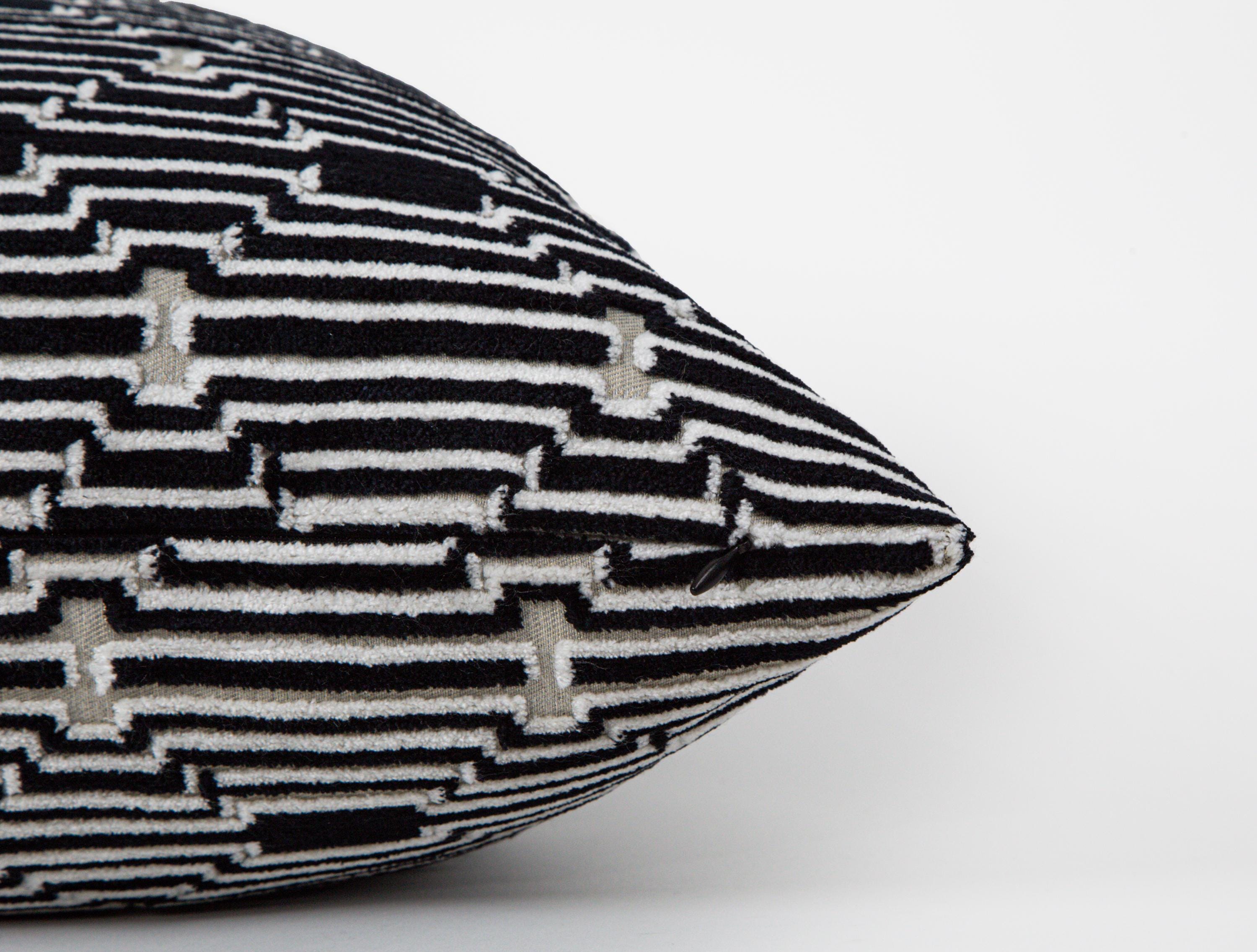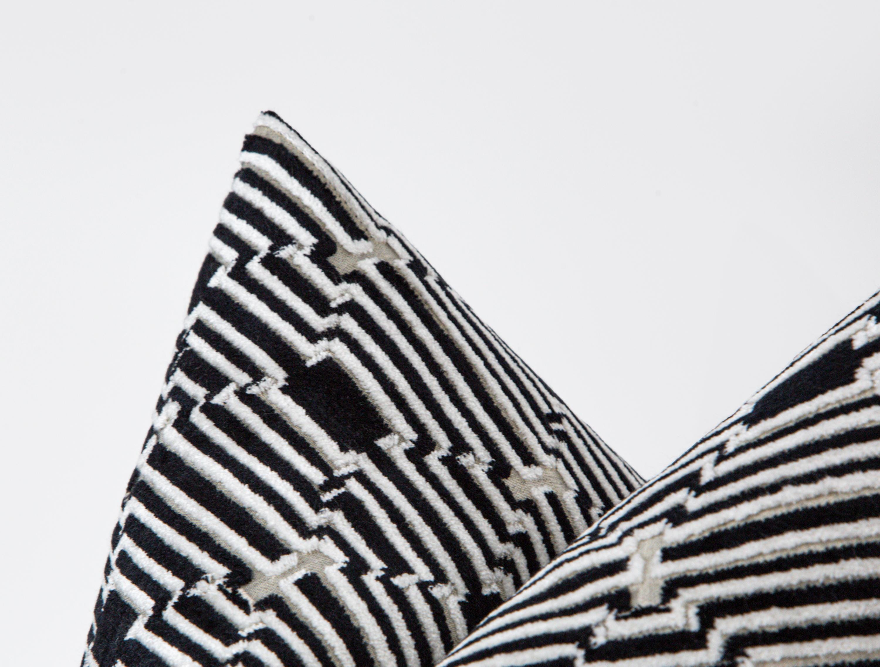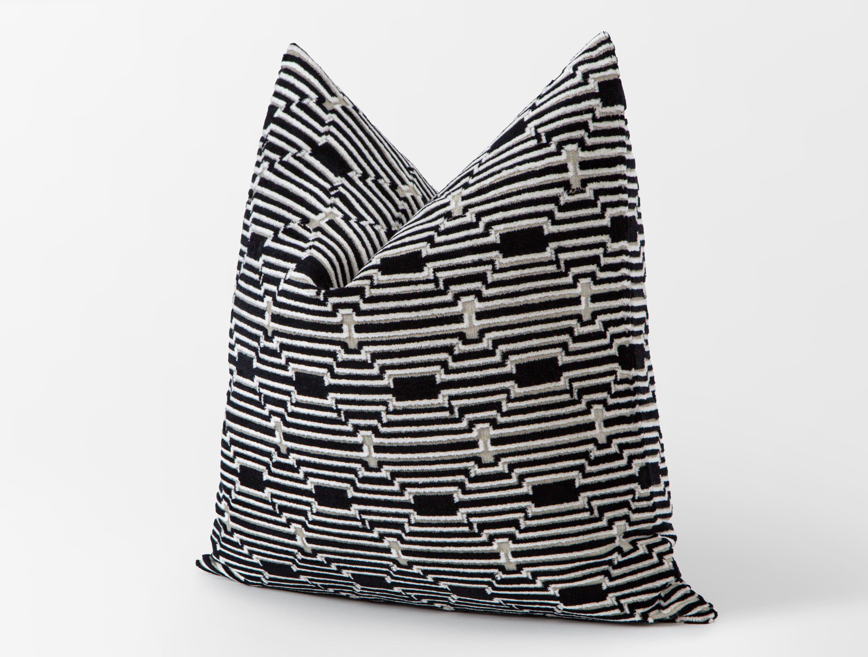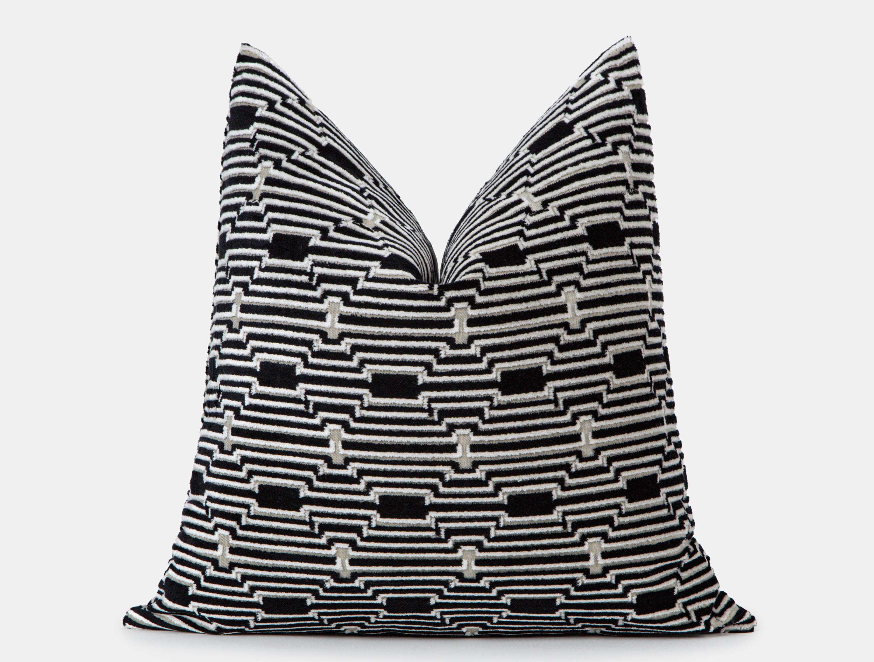 Black White Velvet Pillow Cover, Modern Geometric Cushion