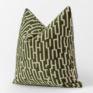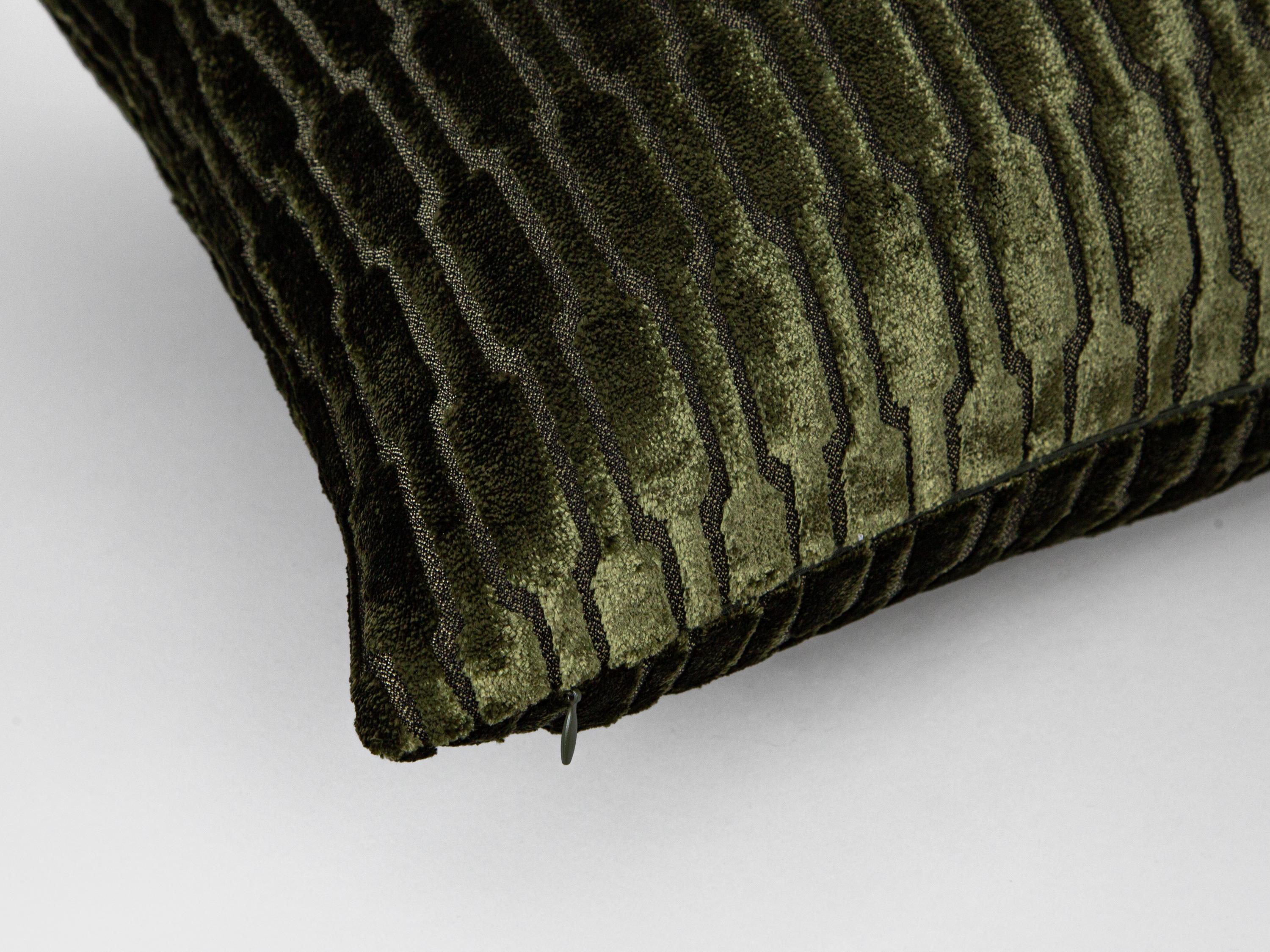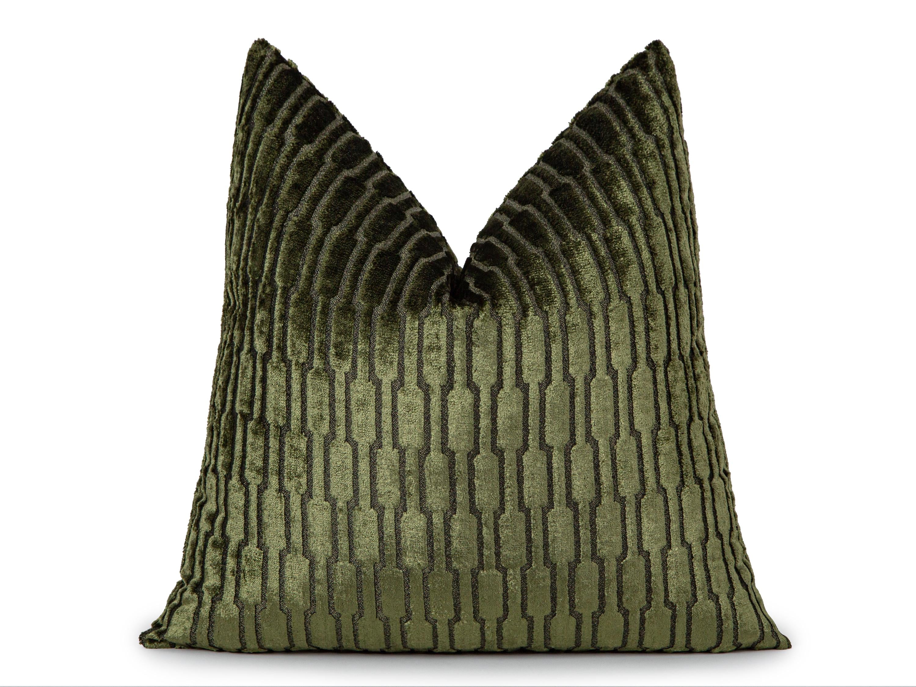 Olive Green Geometric Cut Velvet Pillow Cover: Luxury Throw Cushion