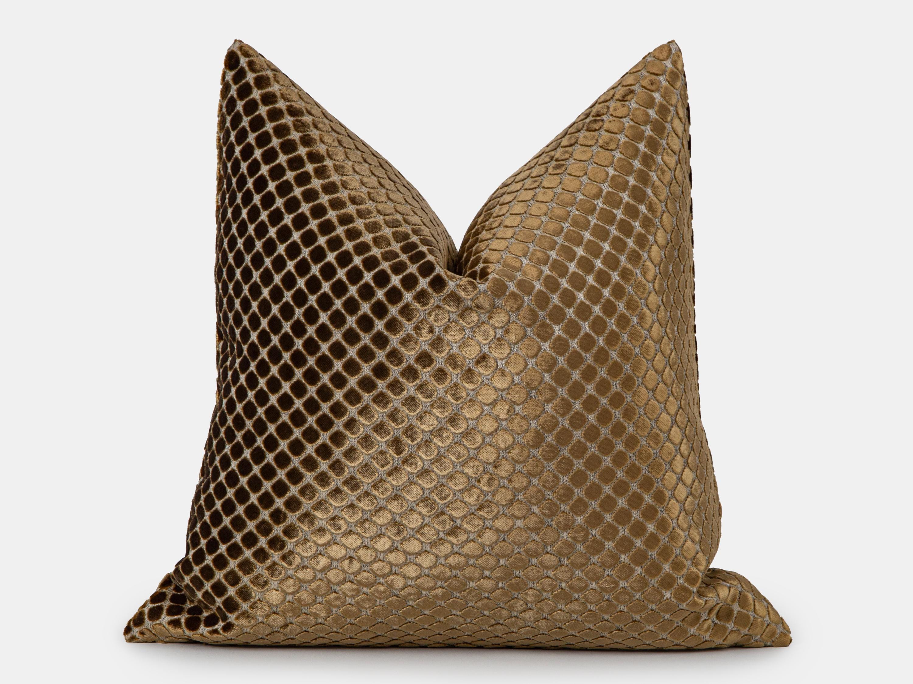 Brown Dotted Velvet Pillow Cover, Luxury Textured Accent Cushion, Designer Throw Pillow,