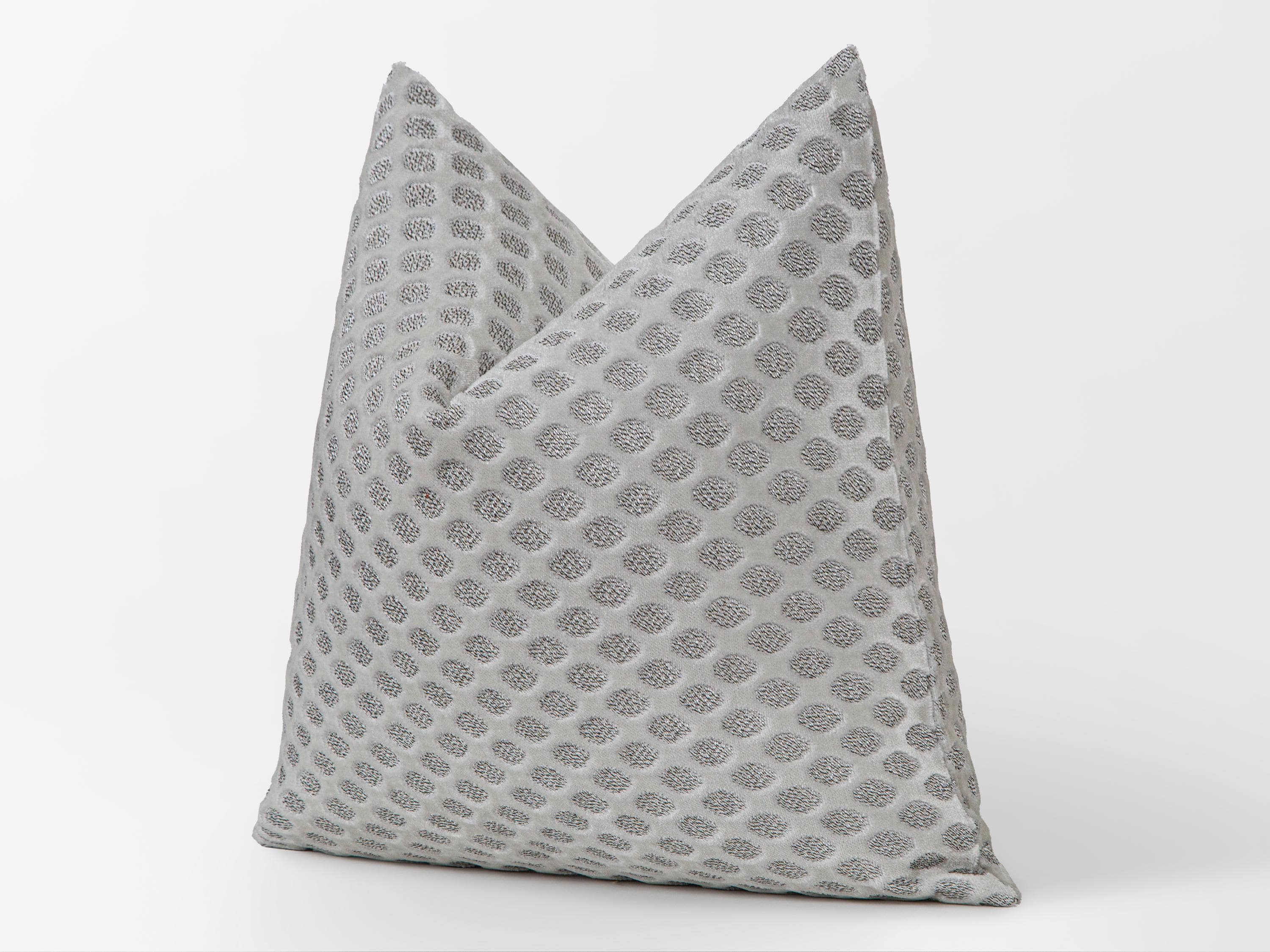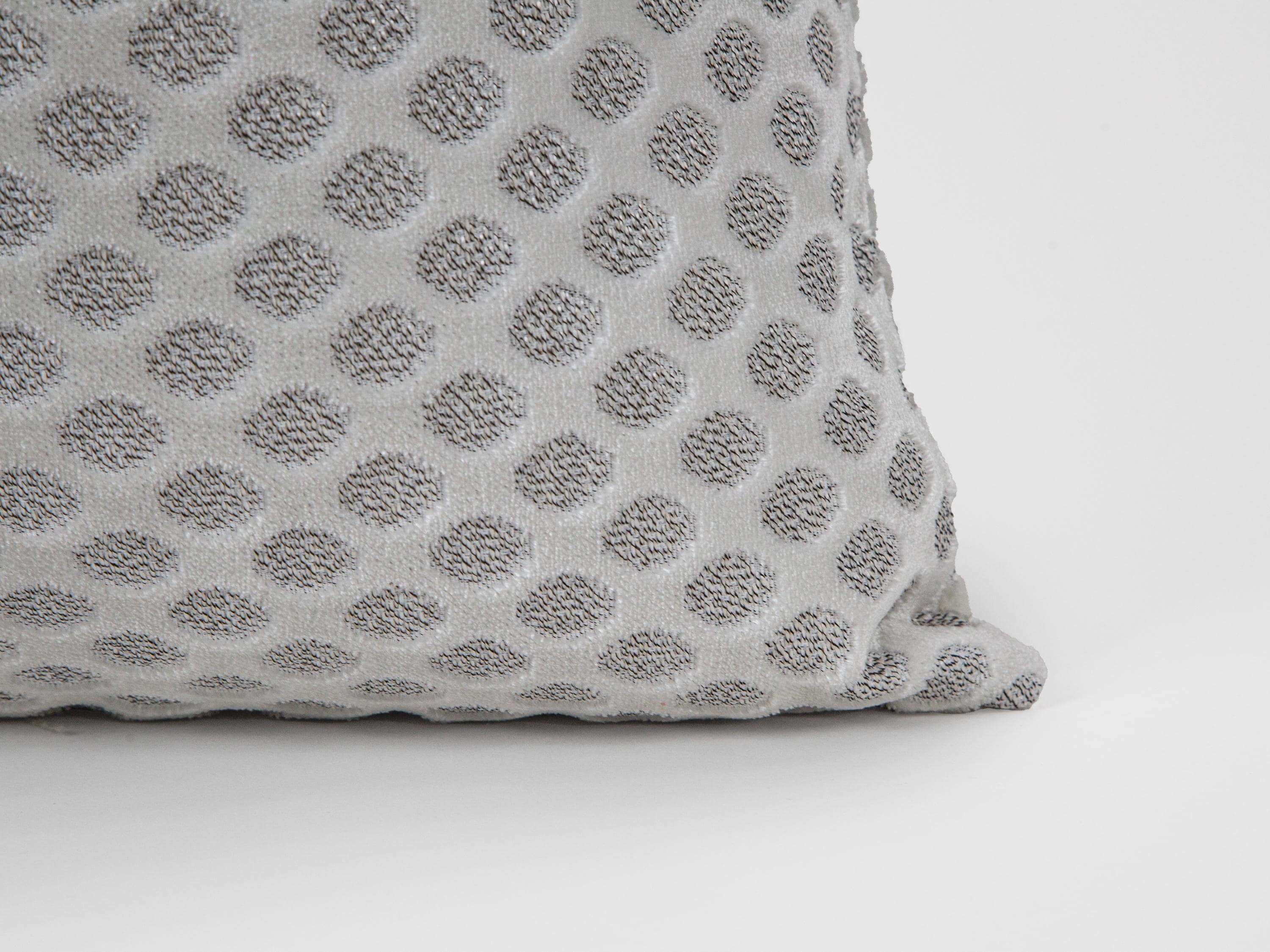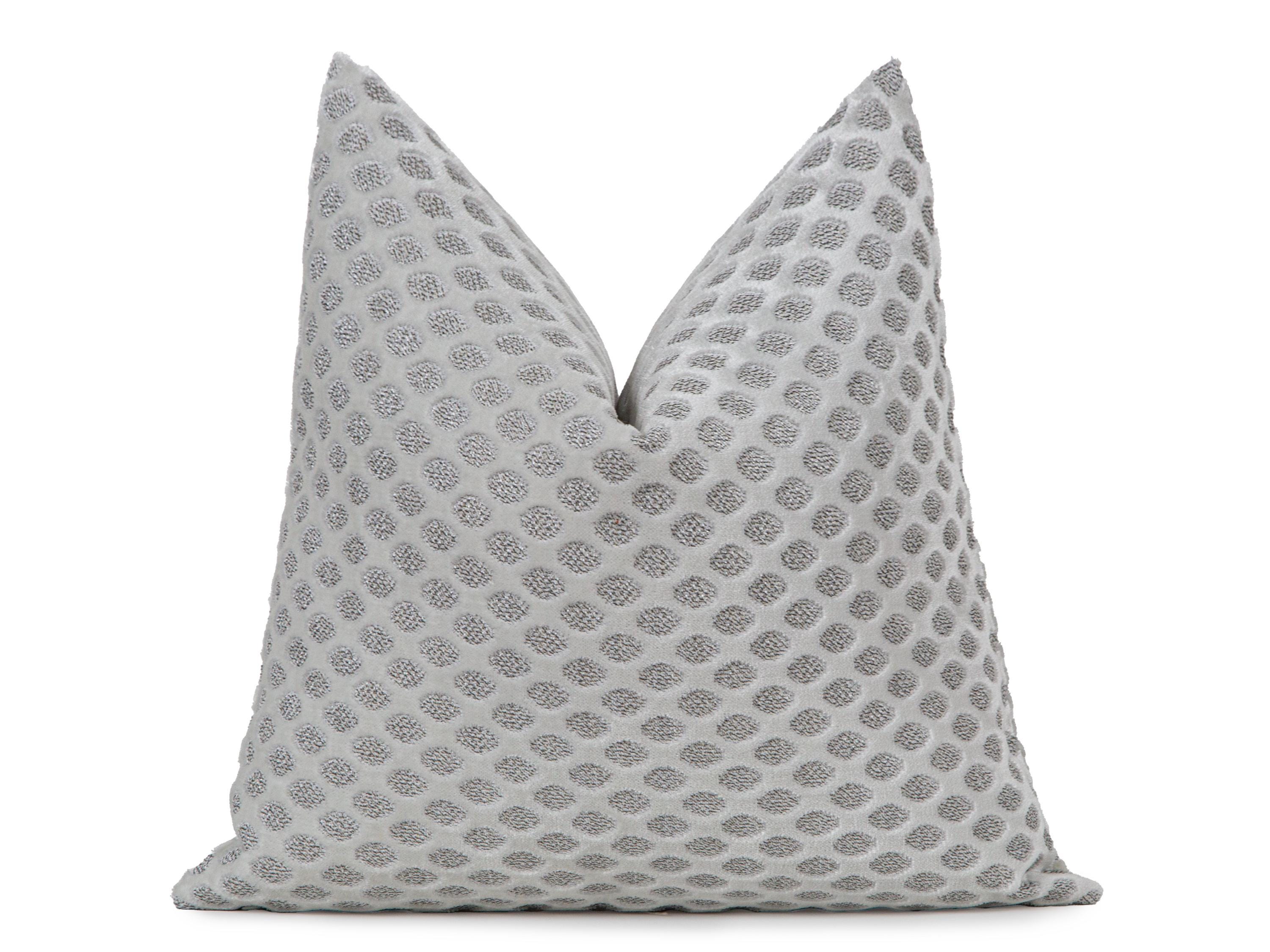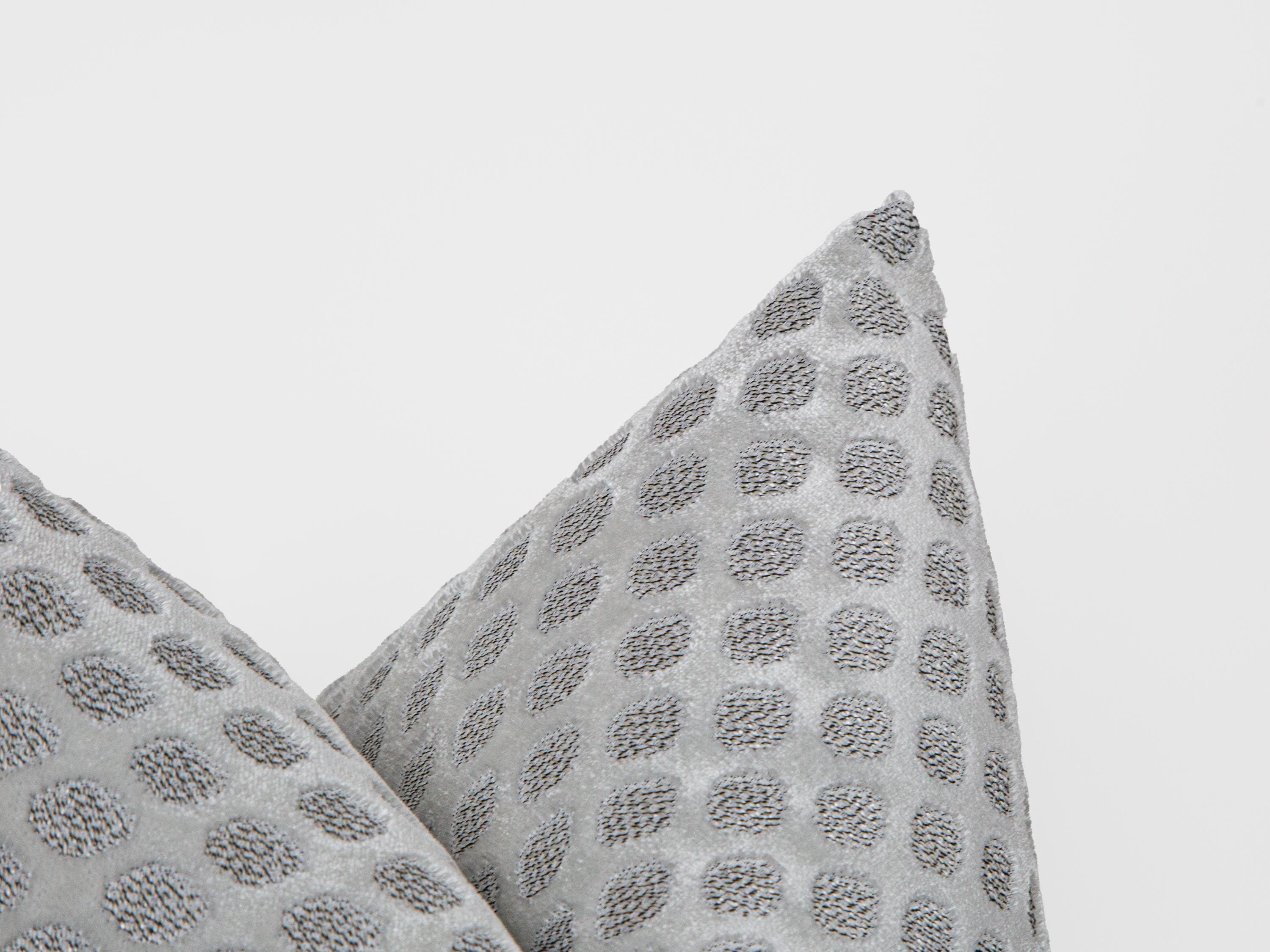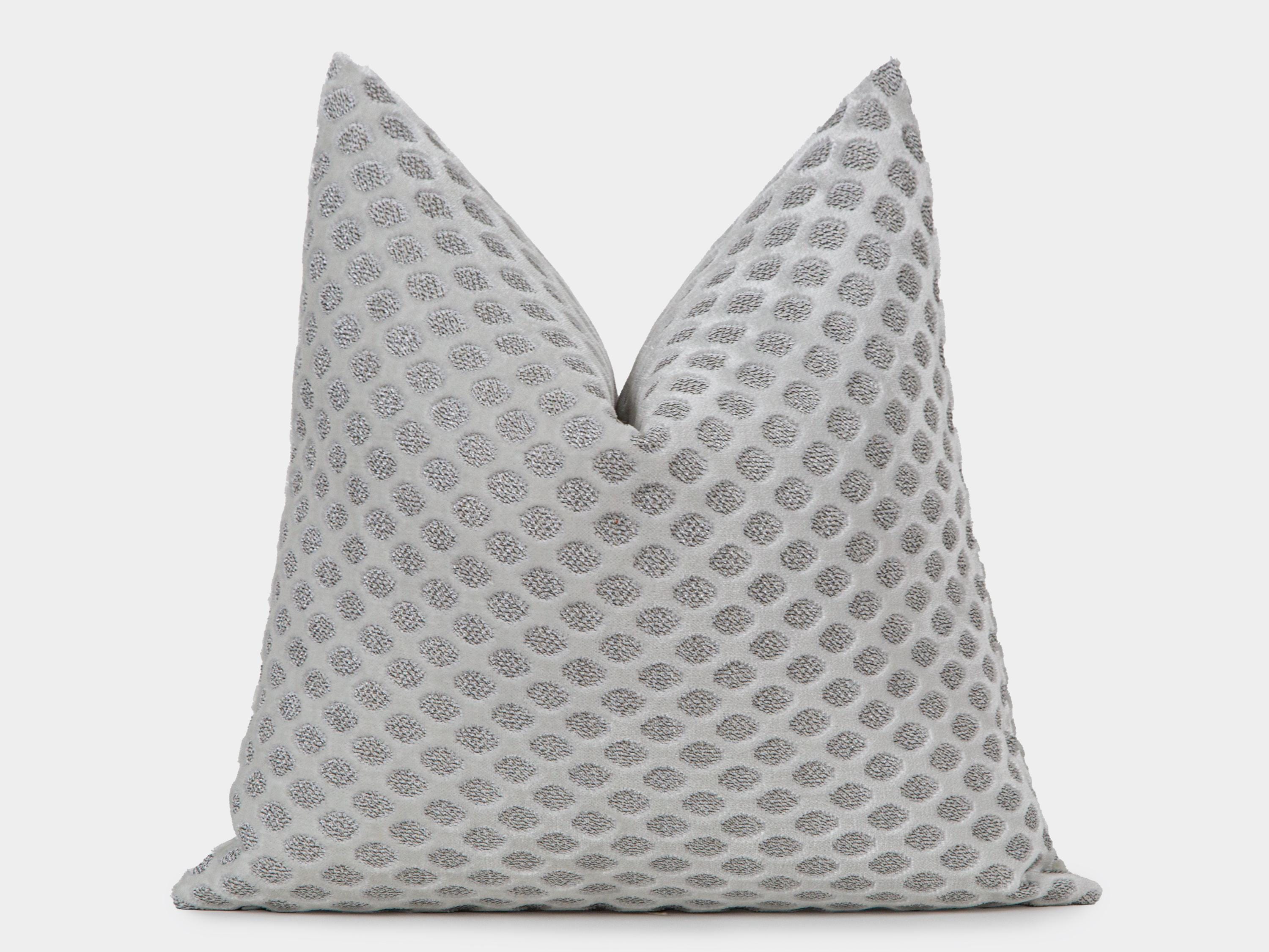 Elevate your sofa with this stunning Silver Grey Polka Dot Velvet Pillow Cover. Featuring a unique raised "honeycomb" dot texture, this cushion catches the light beautifully, adding depth and a modern touch to any monochrome or neutral living room.