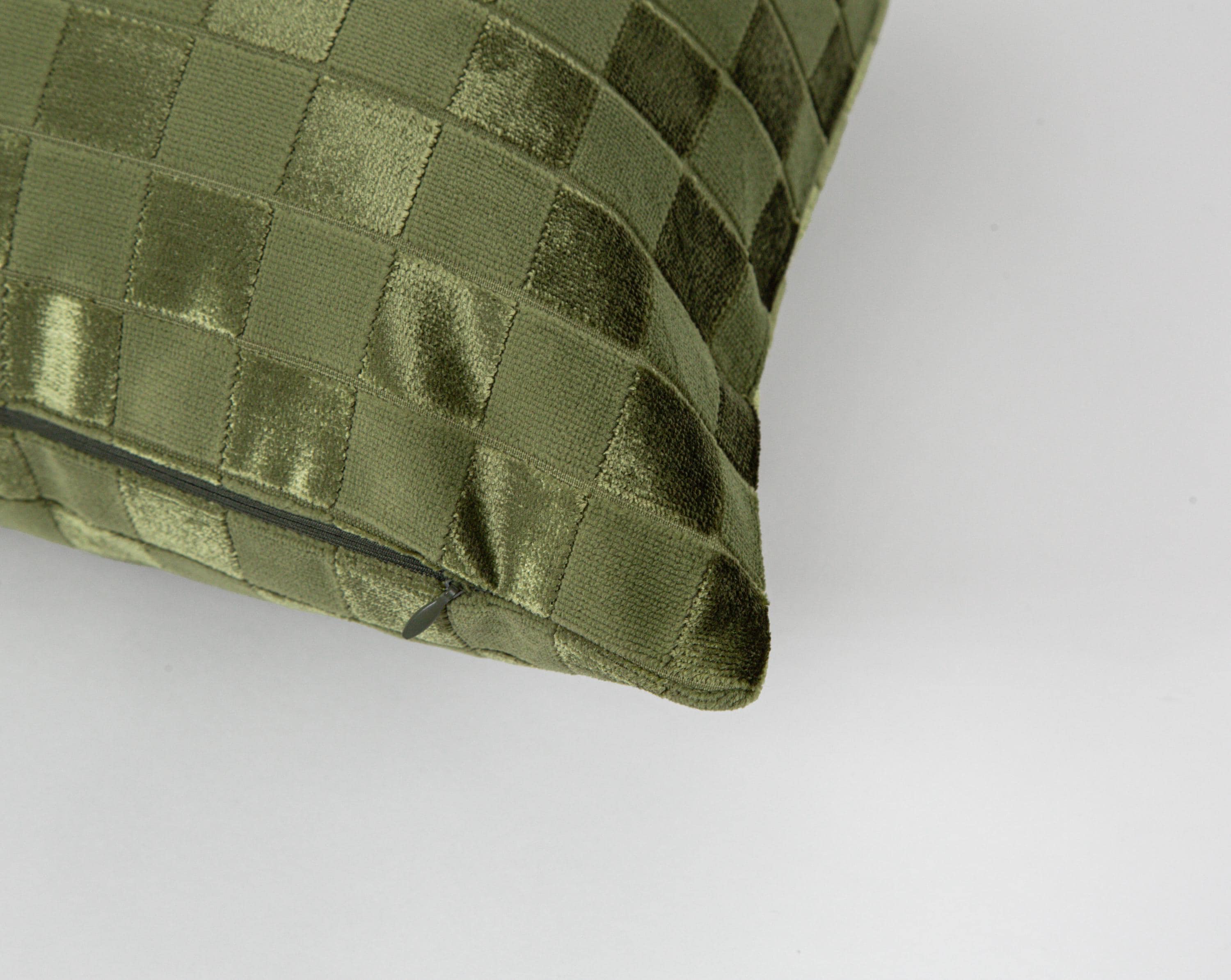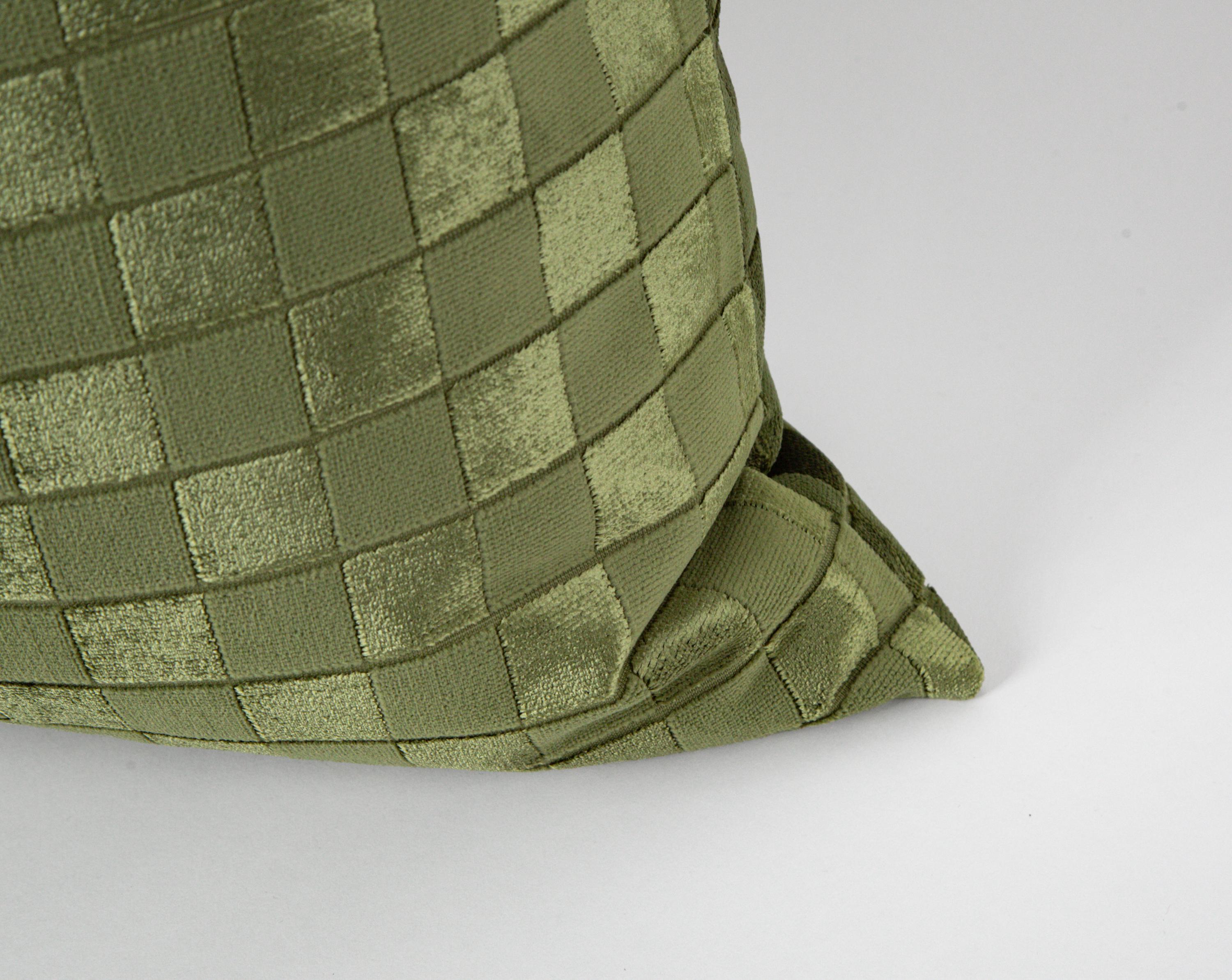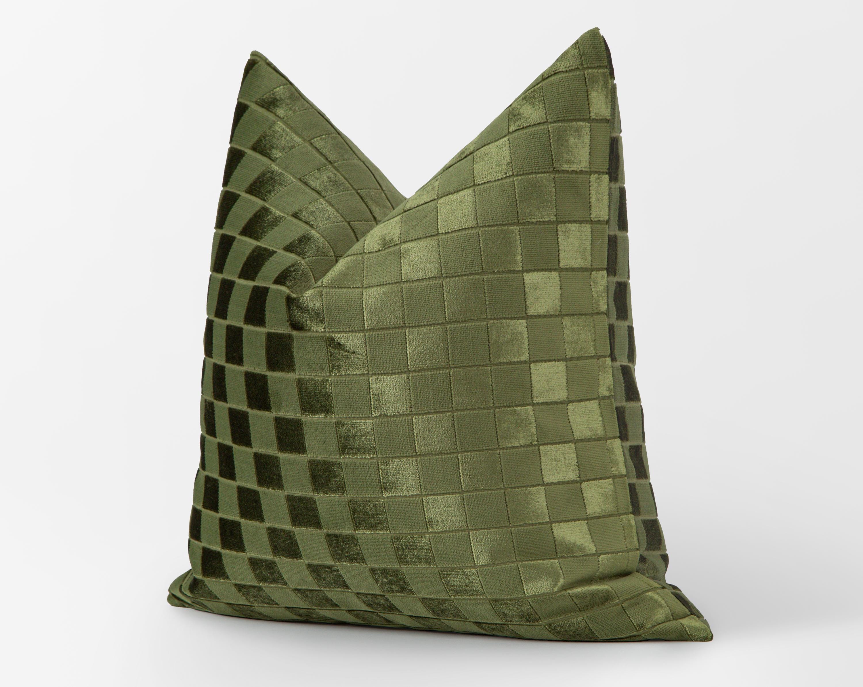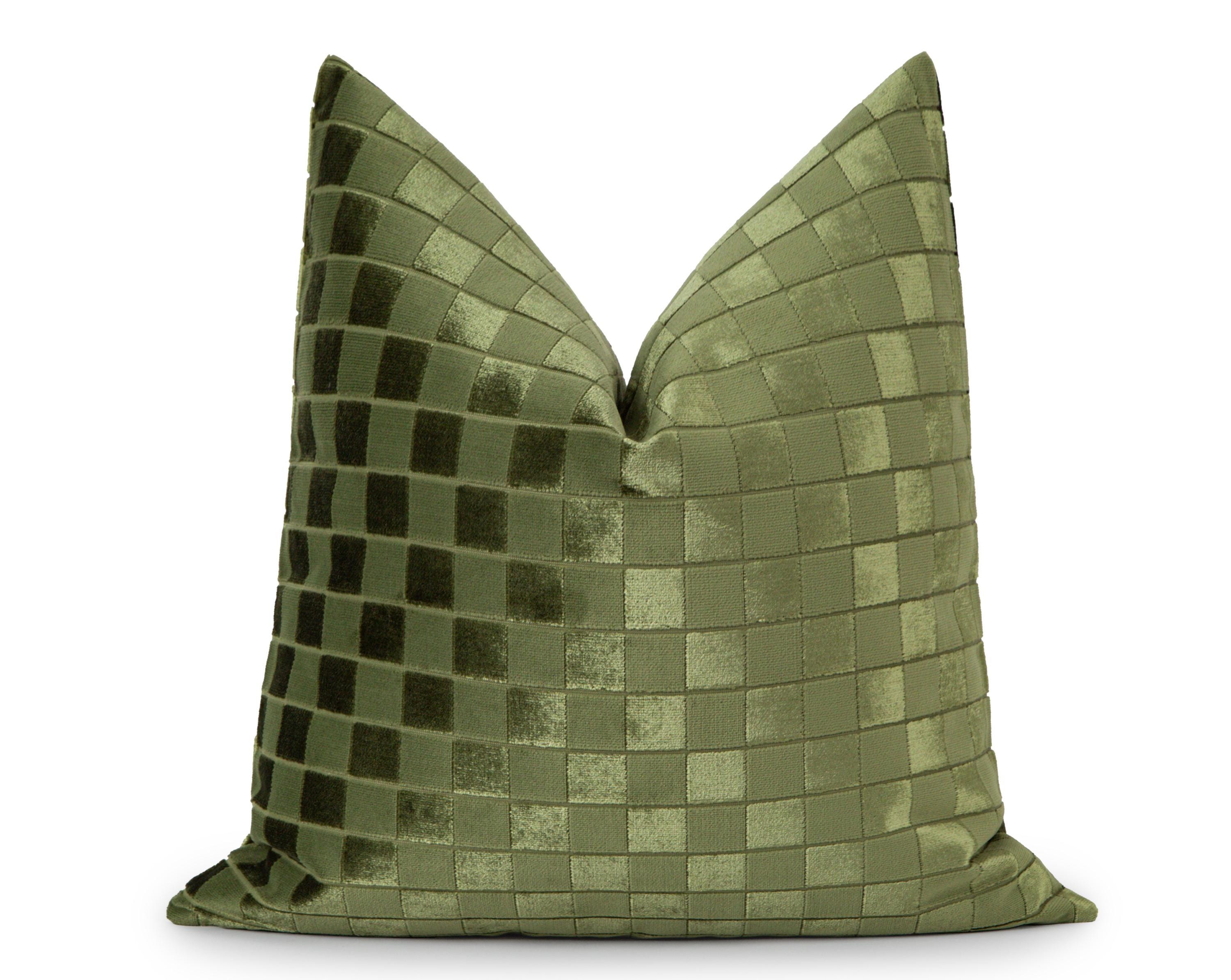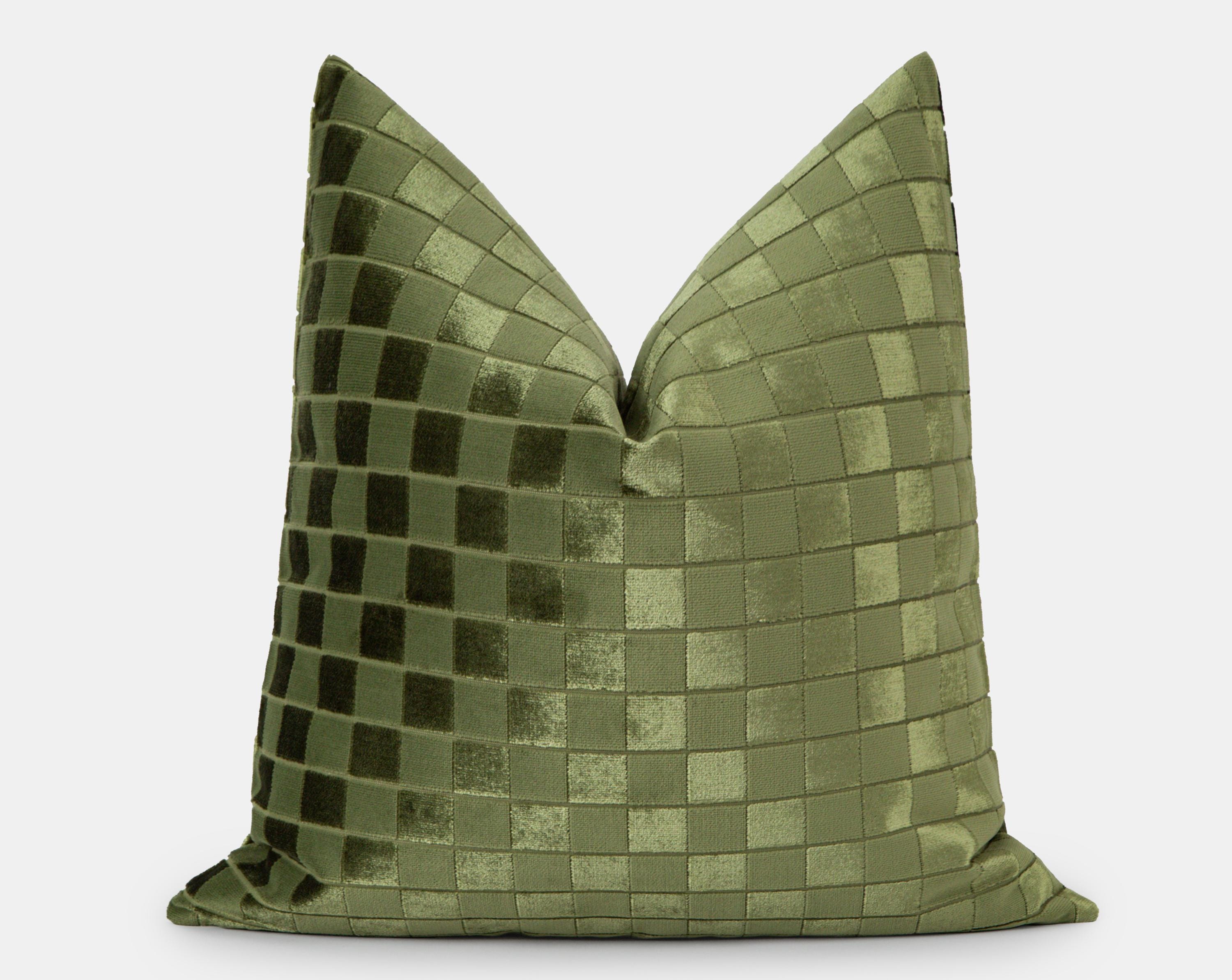 Olive Green Checkered Velvet Pillow Cover, Modern Grid Textured Throw Cushion, Geometric Luxury Case