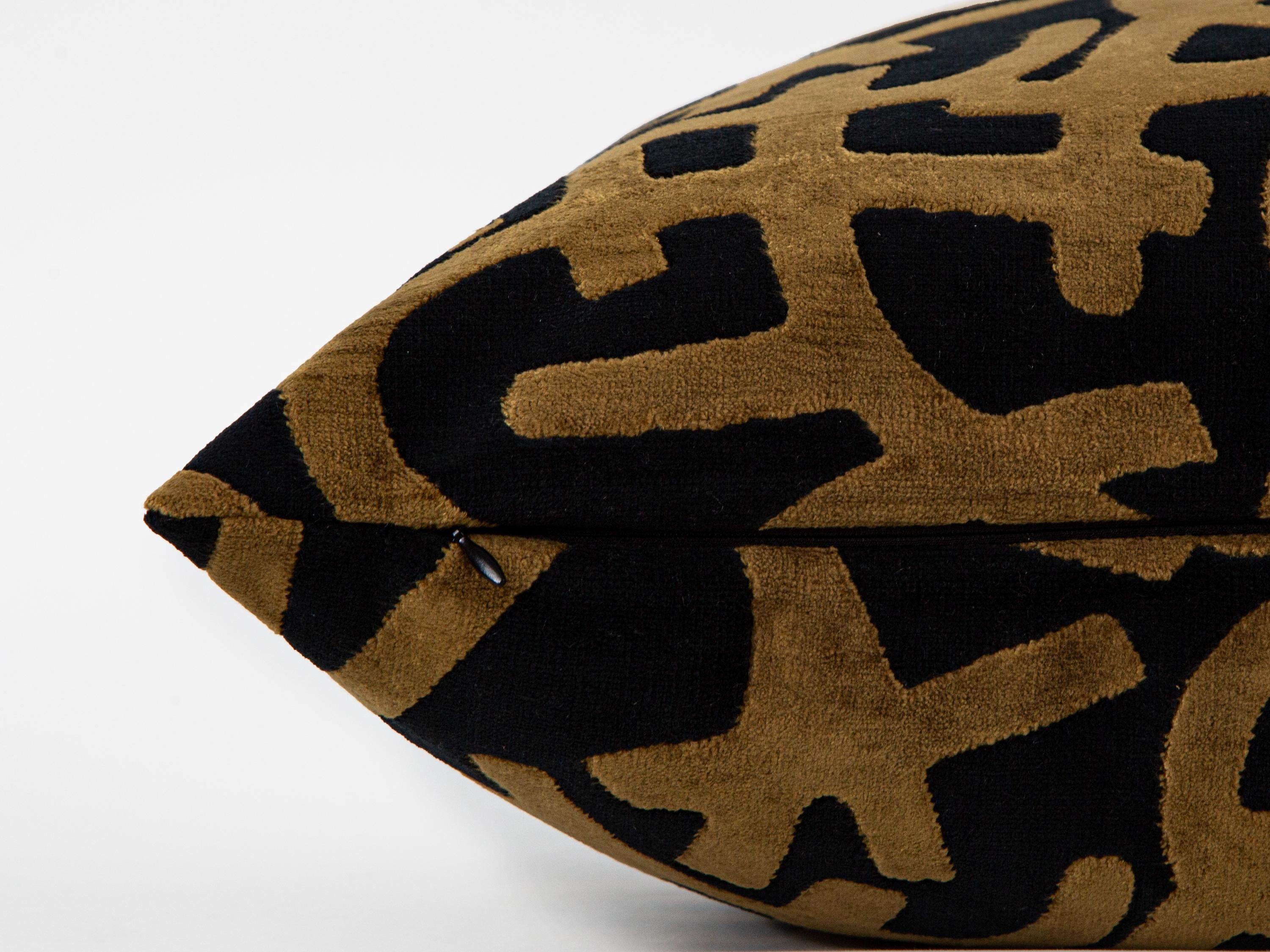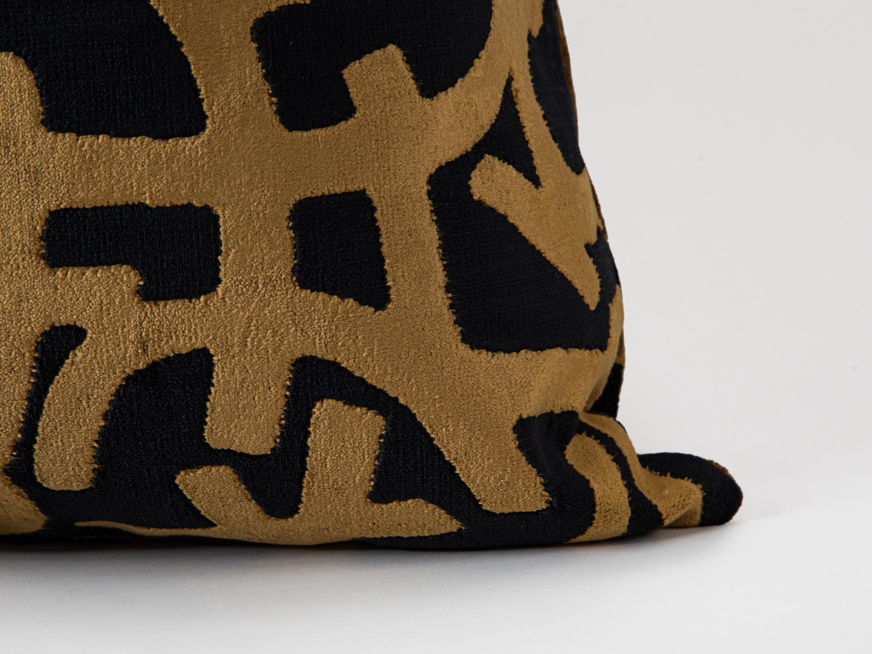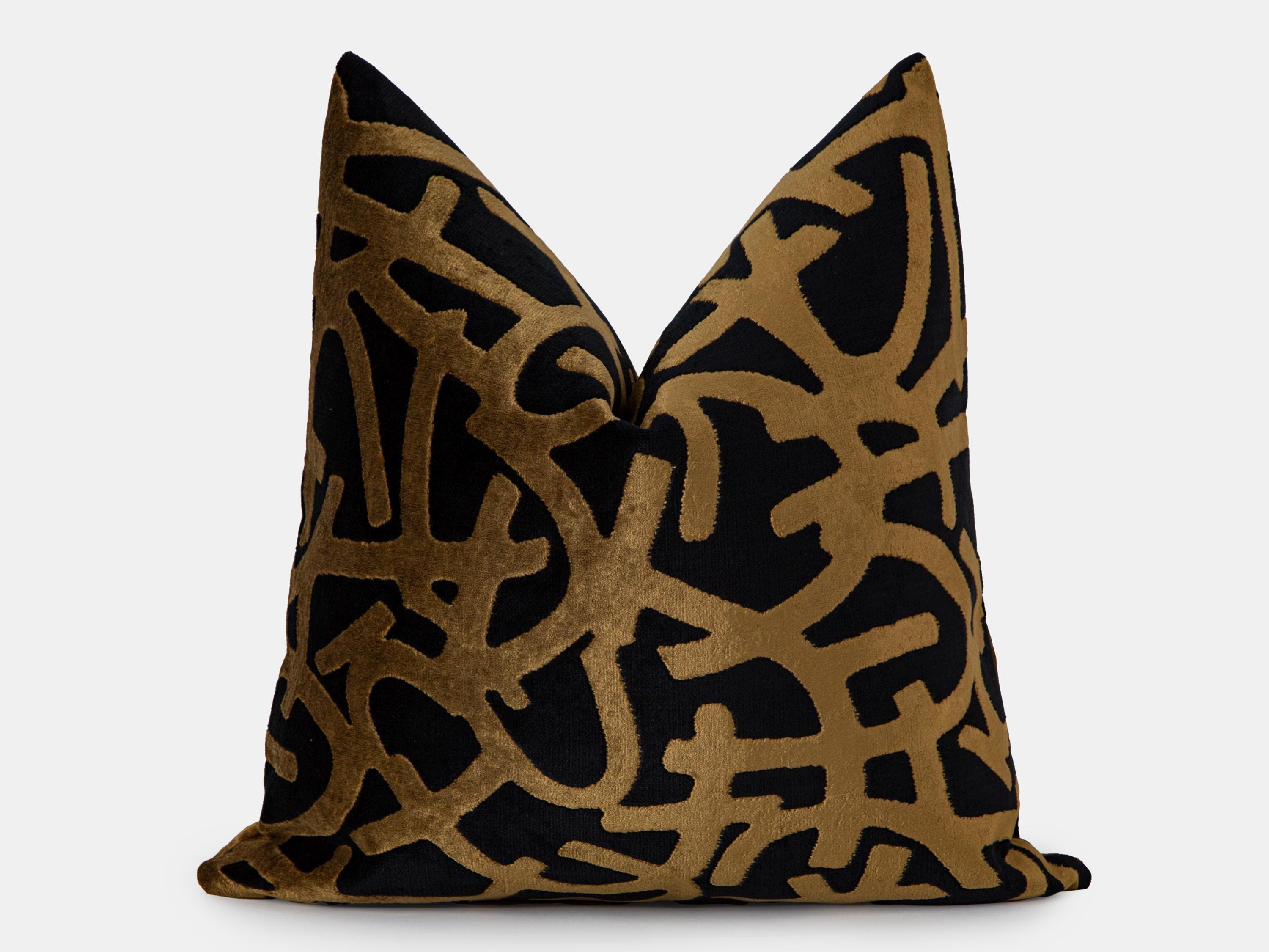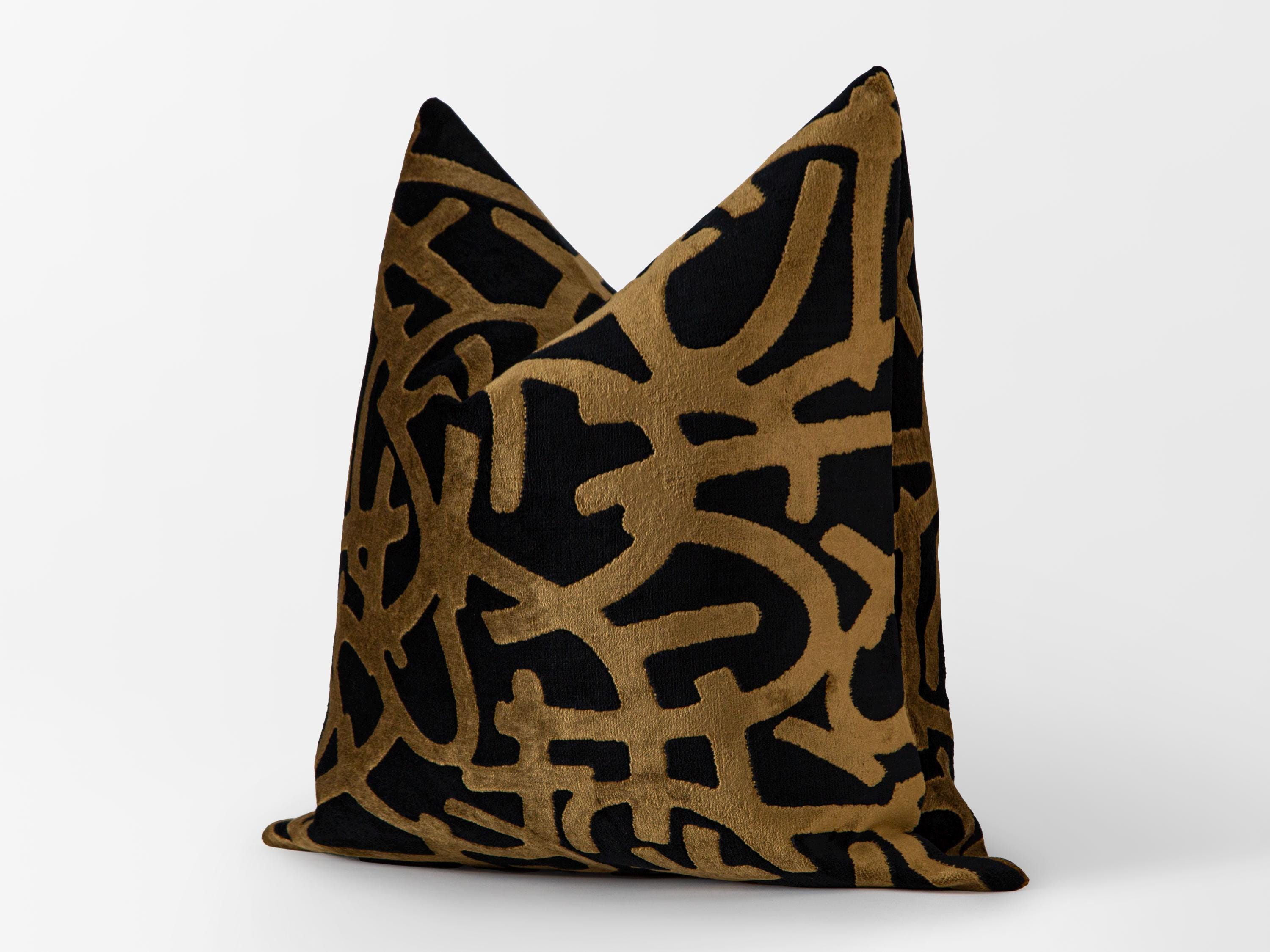Modern Abstract Gold Black Pillow Cover, Designer Graffito Style, Luxury Velvet Textured Cushion Case